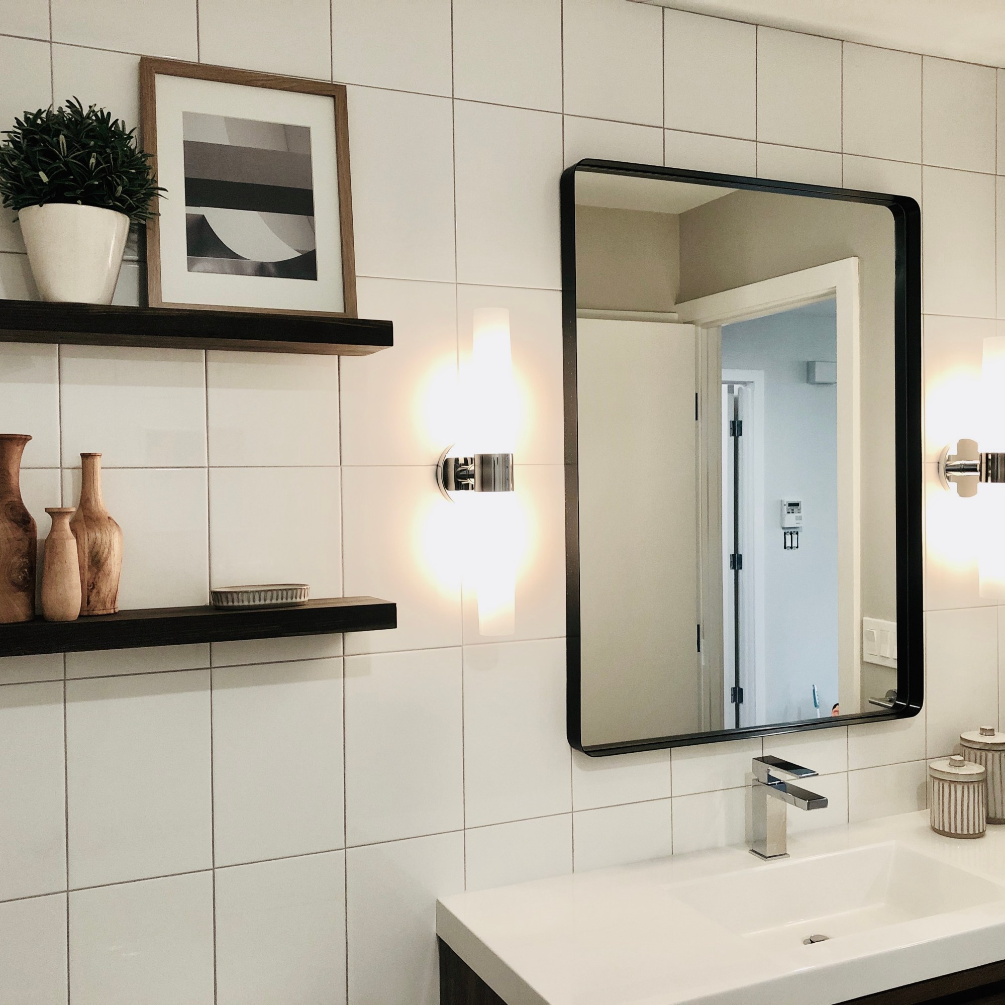 This is a completely reimagined guest bathroom in the “California Modern Ranch” aesthetic updating a 90s condo to a more streamlined and comfortable modern home for the owner.